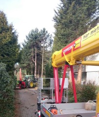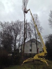 Auf einem Wuppertaler Betriebsgelände wurden mehrere direkt am Betriebsgebäude stehende Bäume mit Hilfe einer Arbeitsbühne