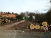 Zu Fällen waren zwei Eichen mit Stammdurchmessern von 80 cm. Aufgrund der engen Gegebenheiten und des Zeitdrucks durch die