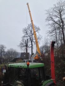 erforderliche Straßensperrung wurde die Spezialbaumfällung mit Hilfe eines Autokrans durchgeführt.