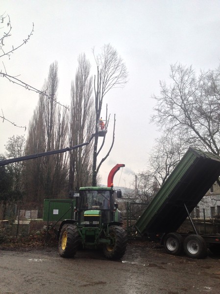 durch Schädlingsbefall akut gefährdet und stellten eine Gefahr für die angrenzende Wohnbebauung dar. Die Pappeln wurden seilunterstützt gefällt und vor Ort
